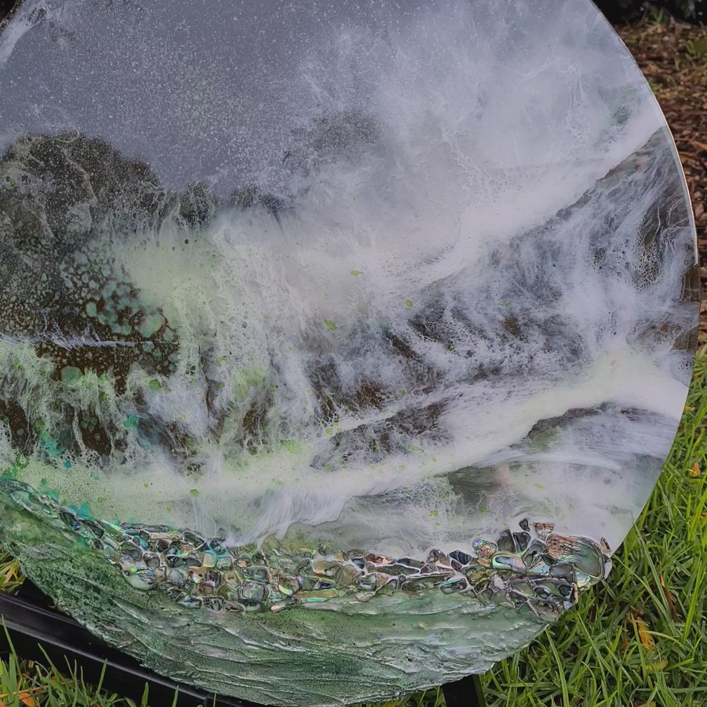 Original Multi-layered textured Resin Artwork. Embellished with Paua Shells from New Zealand.