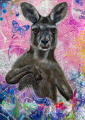 'Bushland Buddies' - Triptych ' Kangaroo' -Colourful trio of three very recognisable Australian animals that bring joy, personality and a splash of the outback to any room. Bouncy, bold, and full of attitude — this roo isn’t just hopping through the outback, he’s strutting like he owns it. With a twinkle in his eye and a pouch full of personality, he captures the true Aussie spirit: lively, cheeky, and always ready for adventure.
