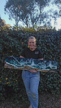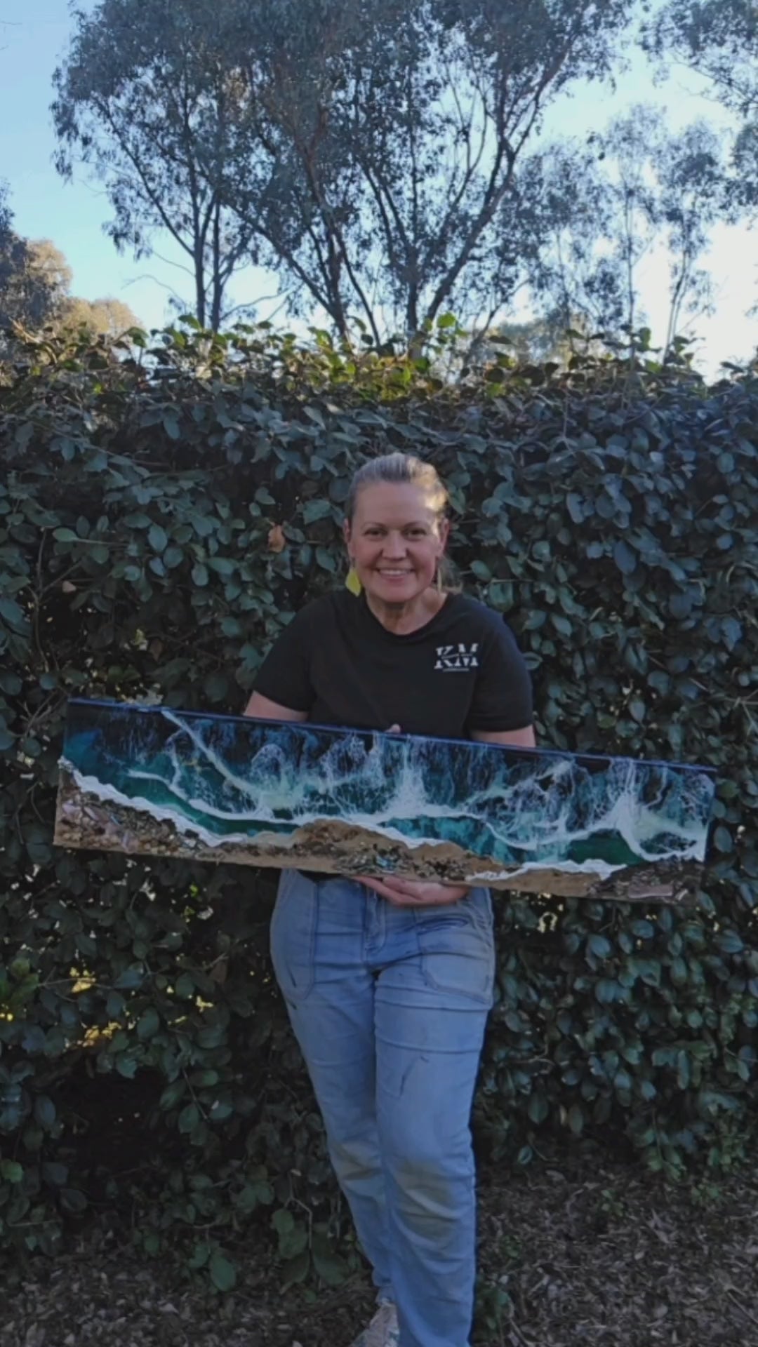 Bring the calm of the coast into your home with this soft, ocean-inspired resin artwork. Gentle layers of green & teal flow together like waves lapping against the shore, creating a soothing sense of movement and depth. Real paua shells and coastal rocks are embedded within the glossy resin, catching the light with a natural shimmer. Touches of ink and paint add texture and dimension, reminiscent of sunlit shallows and seafoam. Perfect for a coastal or beach-themed space, this piece brings the beauty and tranquility of the seaside indoors.